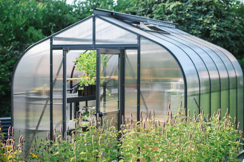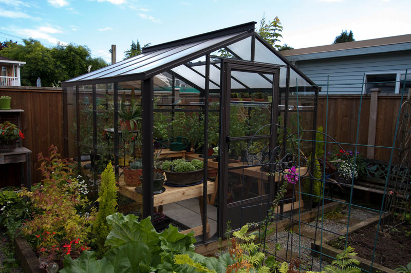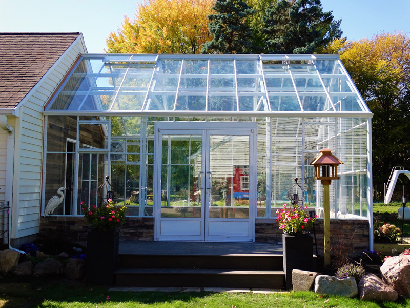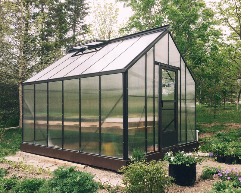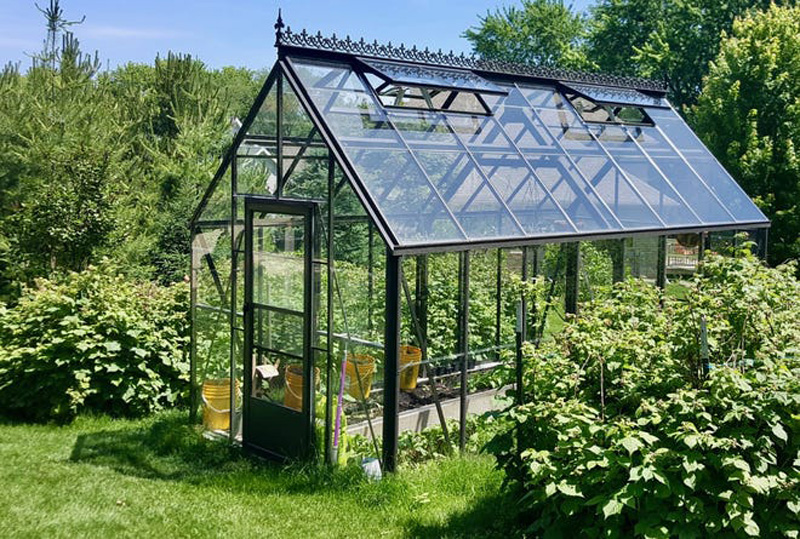 Tempered safety glass to minimize breakage or injury. Full light transmission controls the amount of sun in the greenhouse.